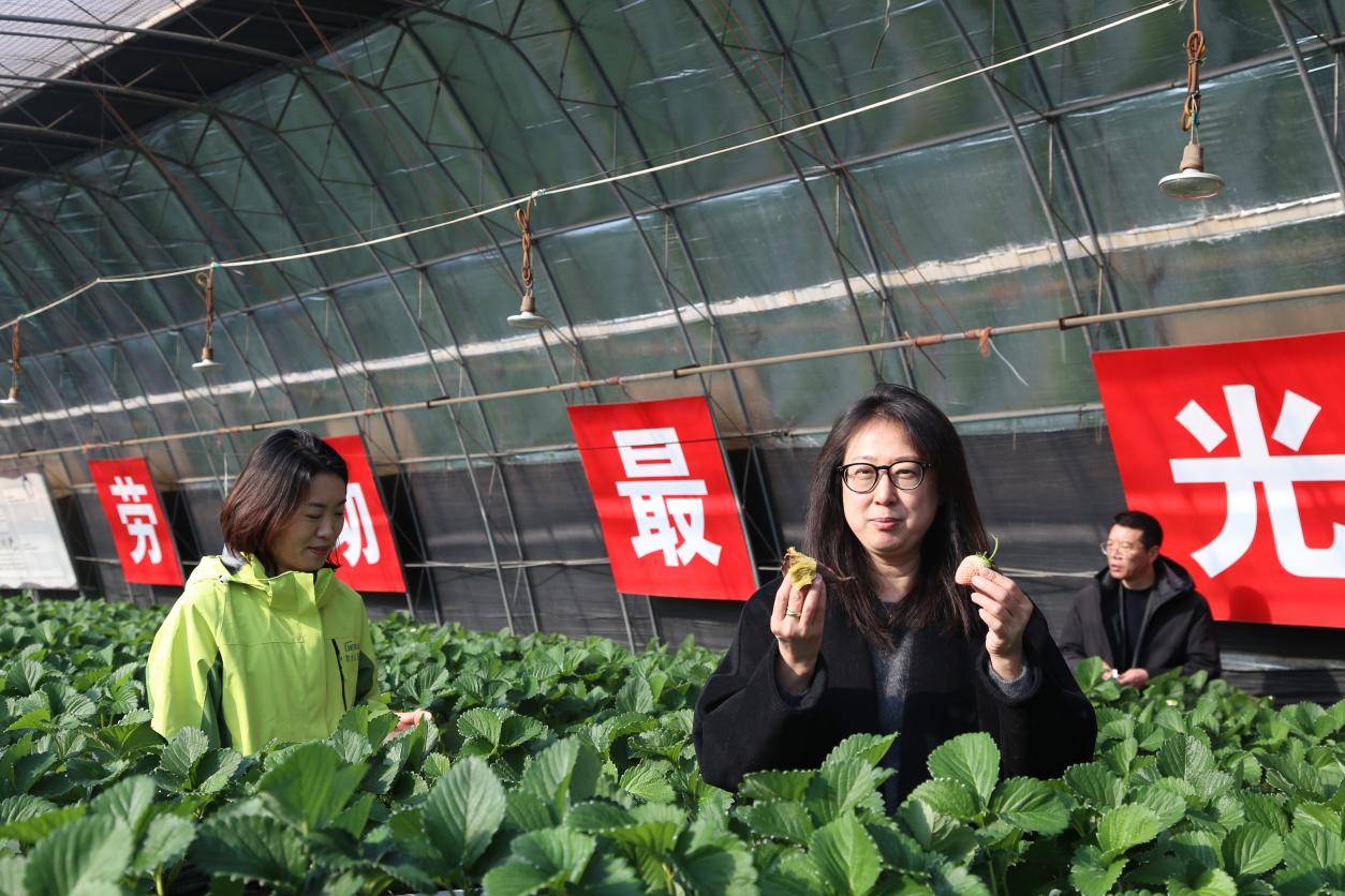 亚栾湾景区以桃为核心特色,不仅拥有规模化桃林种植基地,更是延伸出桃子深加工产业链,以桃为媒将鲜甜桃转化为各类风味精深产品,拓宽农产品附加值,成为景区农产业发展的核心竞争力。考察伊始,企业负责人张总 高助理便带领栏目总制片卞主任、导演陈导、栏目组郑主任组一行,首站走进标准化数字化蔬菜大棚。棚内绿意盎然、硕果累累——红彤彤的西红柿挂满枝头,饱满圆润透着酸甜气息;粉嫩饱满的草莓长势喜人,果香四溢惹人垂涎;翠绿挺拔的黄瓜鲜嫩欲滴,尽显生态种植优势。每一株作物都采用科学培育方式,全程把控品质,彰显亚栾湾对生态农业的坚守。