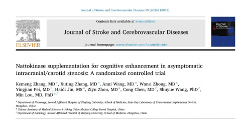 另一项由浙江大学医学院附属第二医院开展的RCT(随机双盲对照)试验也证实,NSKSD纳豆激酶能够改善无症状性颅内/颈动脉狭窄患者的视觉空间能力和睡眠质量,对认知功能衰退的风险降低约65%。该临床研究成果已于近日在美国国家卒中协会与日本卒中学会联合主办的官方期刊《中风与脑血管疾病杂志》权威发表。