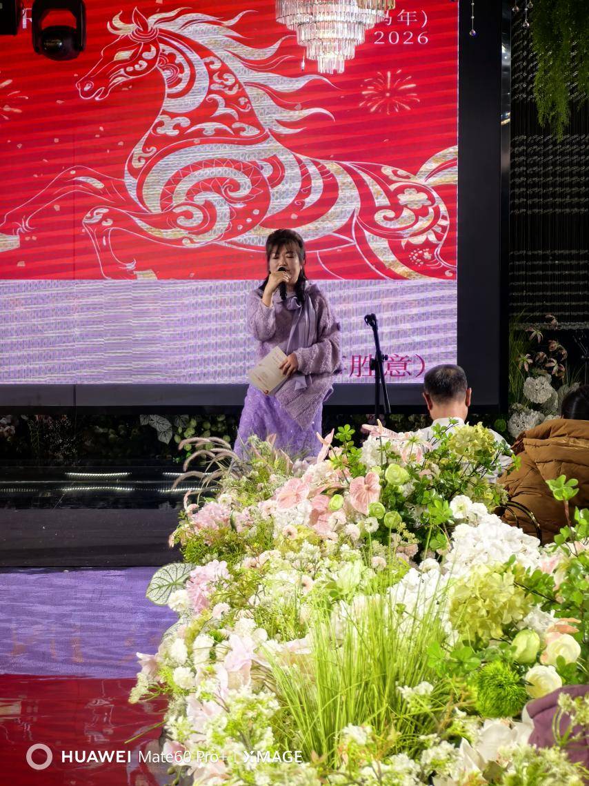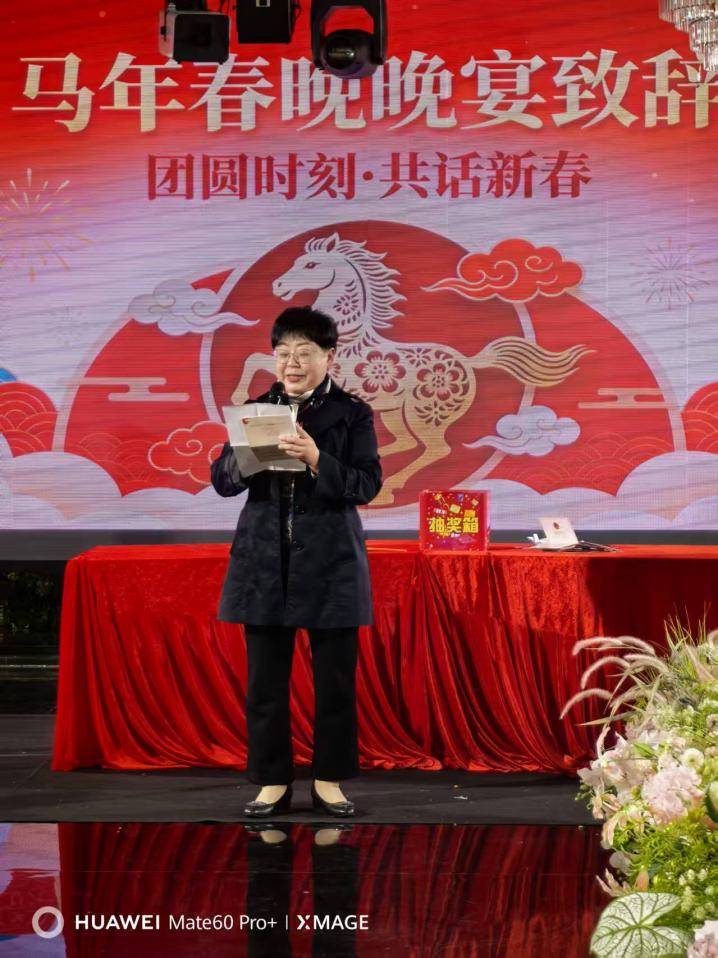 在团圆宴会的重要时刻小区党支部书记唐正英登台致辞,向全体业主致以最诚挚的马年新春祝福,强调将继续凝聚各方力量,携手全体业主在马年策马扬鞭、党建引领下同心筑梦,共建更和谐、更温暖的长青湖幸福家园。