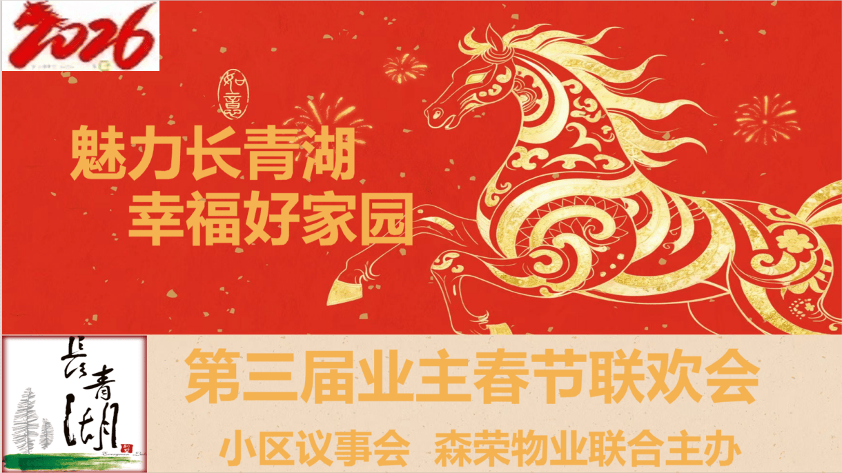 此次联欢会,让“邻里一家亲”的温情在马年新春持续升温,进一步巩固了小区和谐稳定的良好氛围,为2026马年注入了温暖而坚定的力量。未来,在社区的引领、小区议事会和物业的共同守护与全体业主的携手同行下,长青湖小区必将以龙马精神继续向前,持续打造更有温度、更有归属感的幸福家园,让邻里情更浓,让家园更美好!